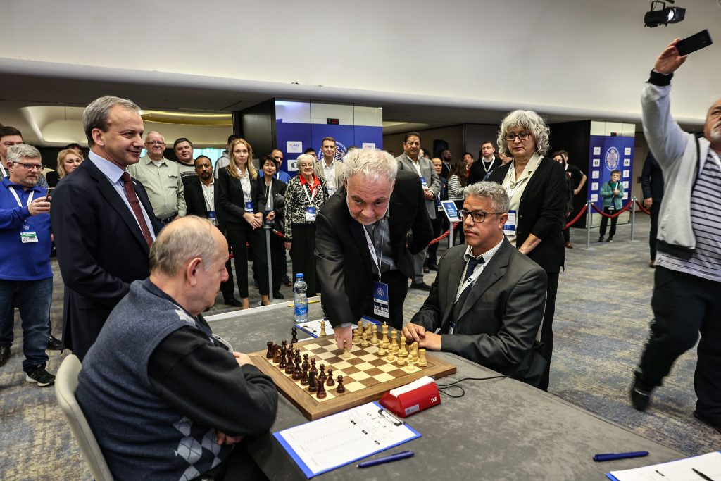 In chess, the ceremonial first move at the start of the tournament is a long-standing tradition, usually carried out by a high-ranking government official, FIDE President, key sponsor, or famous player. In the opening round, the spotlight was given to those who don’t often have it, as Grandmaster Thomas Luther, head of the FIDE Commission for players with disabilities, in the presence of FIDE President Arkady Dvorkovich, made the first move in the match between Venezuela and Israel.