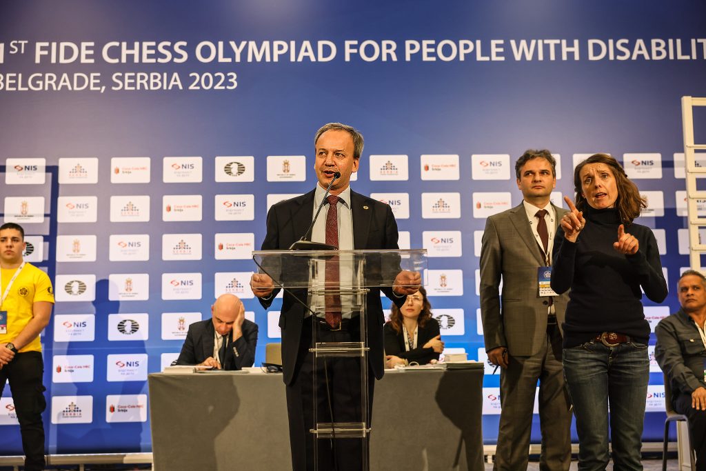 A milestone moment in chess history occurred on January 30, 2023, shortly after 3 p.m. CET, when the opening move of the first Olympiad for players with disabilities was played in the main hall of Belgrade’s Crowne Plaza hotel. “This is the beginning of a new era of inclusion in chess, as players with disabilities started their first ever paralympic event” said Thomas Luther, head of the FIDE Commission for players with disabilities,